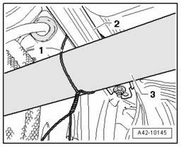 - Press retaining tabs -1- together and remove parking brake cable.