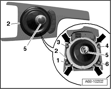 - Remove bolts - 1, 3, 4, 6 - and remove decorative frame - 2 -.