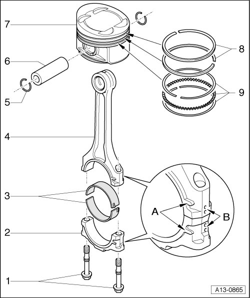• Installation position: - A - markings face toward lower side of piston crown (to center of cylinder block)