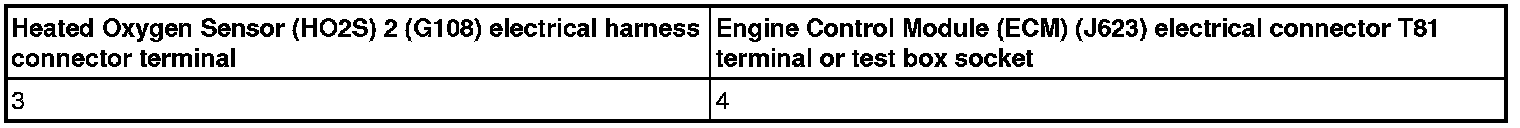 - Using a multimeter, check the Heated Oxygen Sensor (HO2S) 2 (G108) electrical harness connector to the Engine Control Module (ECM) (J623) electrical harness connector T81 for resistance.