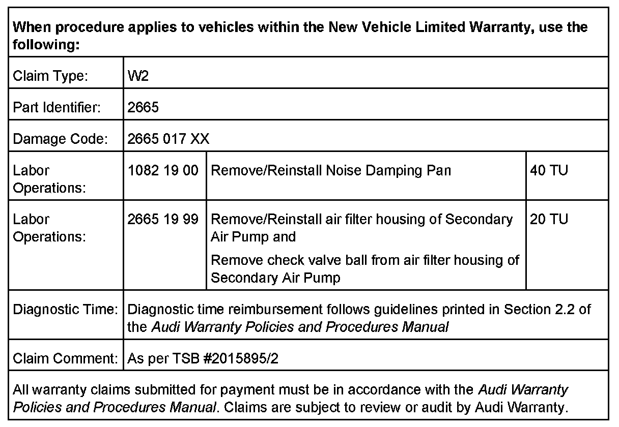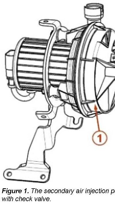 The check-valve ball inside the air filter housing (Figure 1, 2) of the secondary air injection pump -V101- (Figure 1, 1) may sporadically interrupt the secondary air flow when operating and driven on poor roads and store DTCs
