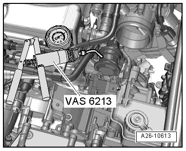 - Connect the (VAS 6213) to the Secondary Air Injection (AIR) combination valve vacuum connection.