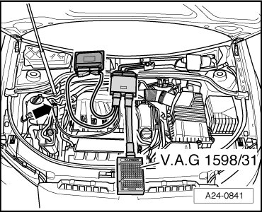 - Connect (V.A.G 1598/31) (test box) to multi-pin harness connectors of wiring harness.