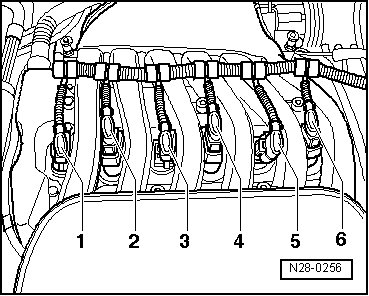 - Disconnect the Ignition Coils with Power Output Stage electrical harness connectors - 1 through 6 - from the Ignition Coils with Power Output Stage.