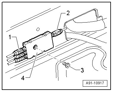 - Disconnect connectors - 1 - and - 2 - on antenna selection control module - 4 - and remove control module.