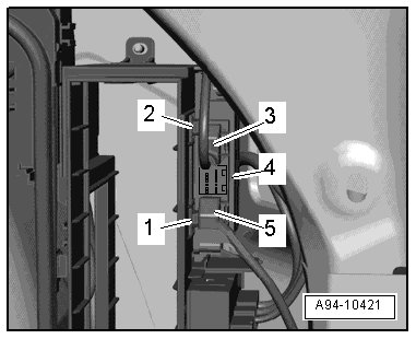- Release retaining clips - 1 and 2 - and remove Parking Aid Control Module - item 4 - from control module bracket.