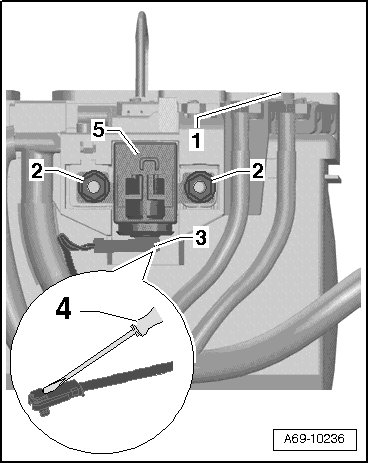 - Release electrical connector - 3 - on Battery Interrupt Igniter (N253) using a screwdriver - 4 -.