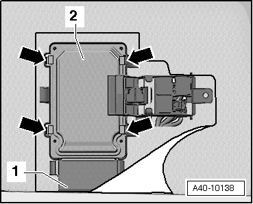- Disconnect the connector - 1 - and remove the control module - 2 -.