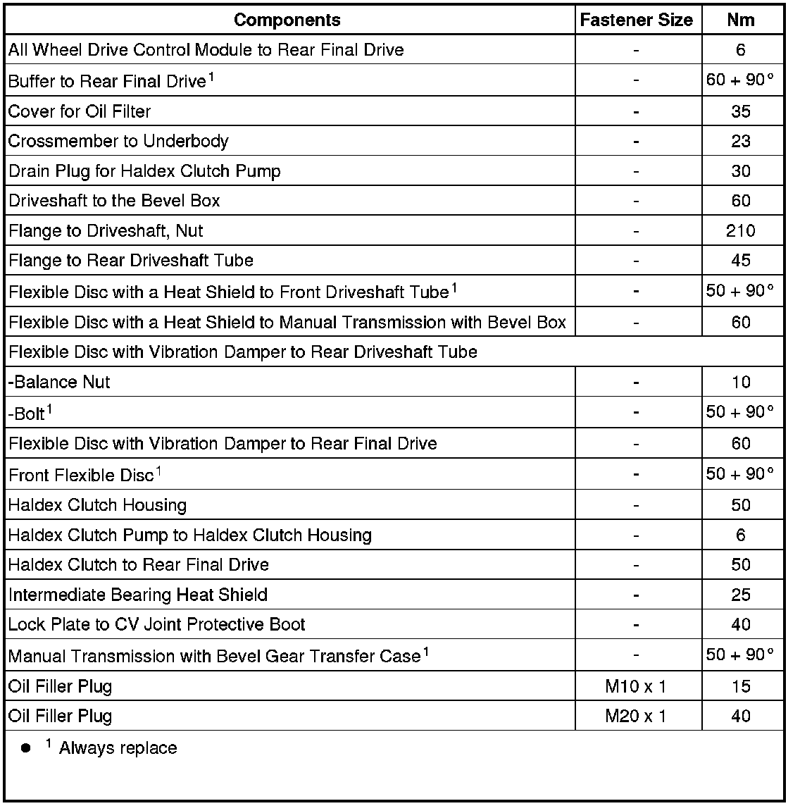 Fastener Tightening Specifications