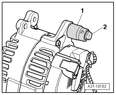 • If the generator is stuck in its bracket, insert a 1/2 inch (19 mm) socket - 1 - on the bushing.