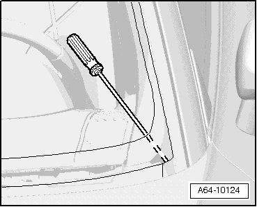 - When reusing the undamaged window, cut rest of adhesive material on window and flange with (V.A.G 1561 A) and (V.A.G 1561/8) so it is even, but do not remove completely.