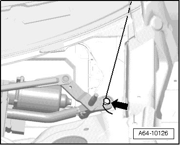 - Tighten end of cutting cord at bolt to wiper arm mounting - arrow -.