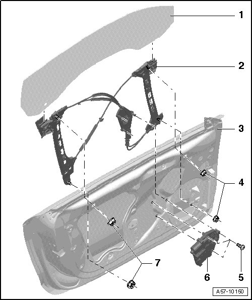 - Lift the window regulator out of the door through the side door opening.