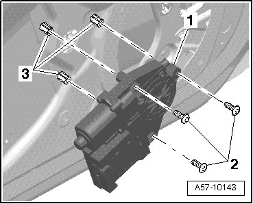 - Slide window regulator motor - 1 -onto threaded pin - 3 -and secure with screws - 2 -.