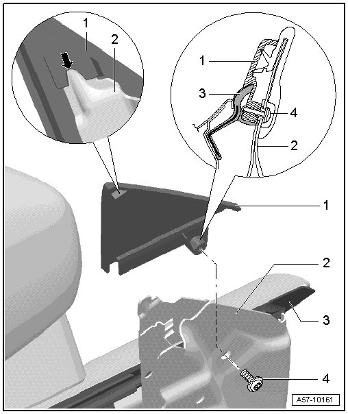 • Attach trim from above as shown - arrow - and secure with bolt - 4 -.
