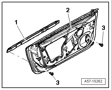 - Loosen nuts - 3 - and install or remove adjusting screws corresponding to door seal on roof or rear window.