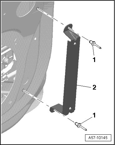 - Remove bolts - 2 - and remove nut - 1 - from threaded pins.