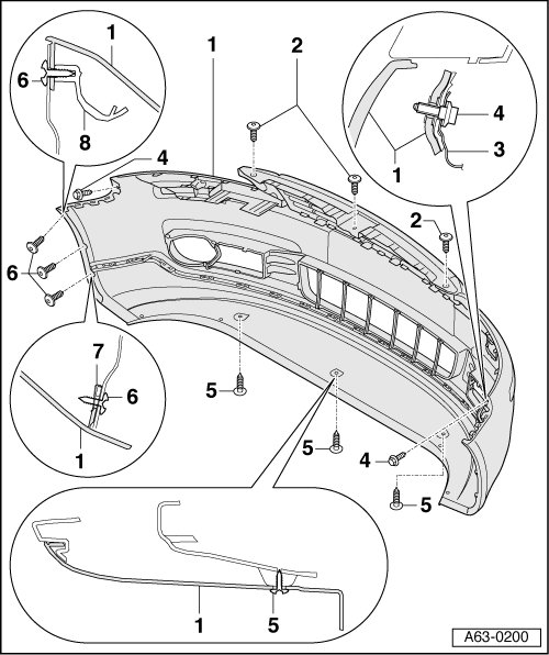 • Bumper cover is bolted to noise insulation with 3 additional sheet metal screws.