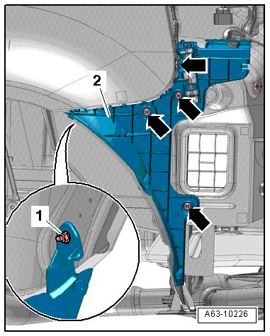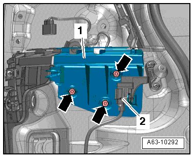 - Remove the bolts - arrows - and nuts - 1 -.