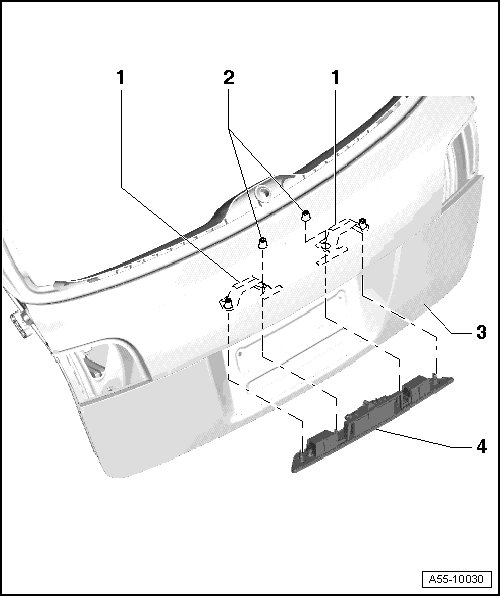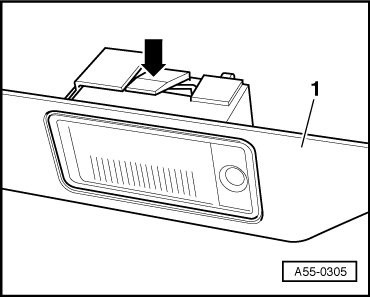 - Press both catches - arrows - over license plate lights down and remove grip piece - 1 -.