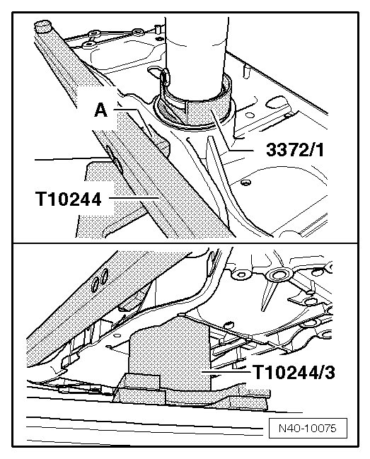 • The flattened side on the installation device (3372/1) must face the (T10244) insert - A -, otherwise the insert will get damaged.
