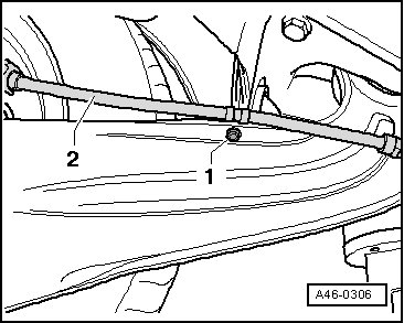 - Remove the bolt - 1 - and remove parking brake cable - 2 -.