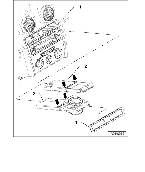 - Remove cupholder - 3 - from upper center console - 1 - as far as possible.
