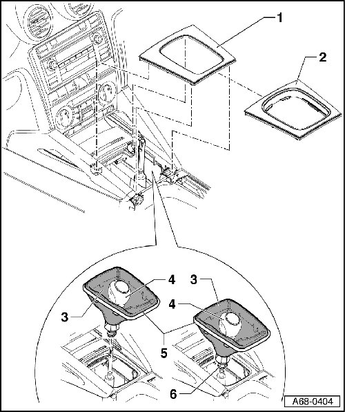- Remove cover - 1 - with selector lever boot - 2 - upward.
