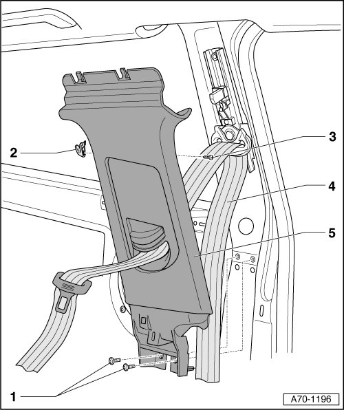 Removing and Installing, refer to => [ Upper B-pillar Trim ]
