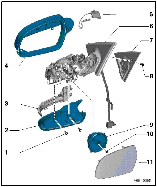 • Removing and Installing, refer to => [ Exterior Rearview Mirror Housing ] Exterior Rearview Mirror Housing