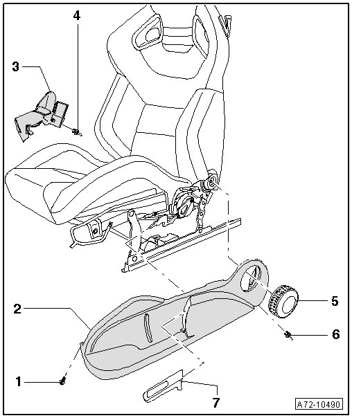 - Remove side panel - 2 - at lower edge from retaining bracket on seat.