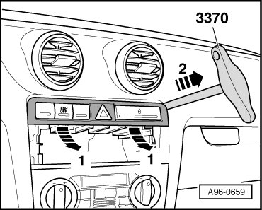 - Carefully remove the ASR and ESP buttons using the (3370) from the switch mount - arrow -.