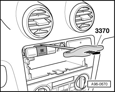 - Carefully remove the ASR and ESP buttons (E256) using the (3370) from the switch mount - arrow -.