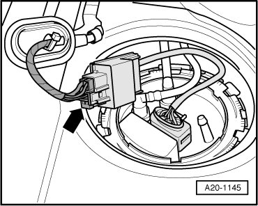• On vehicles with FSI/TFSI engines, the fuel level signal travels from the fuel level sensor through the fuel pump control module.