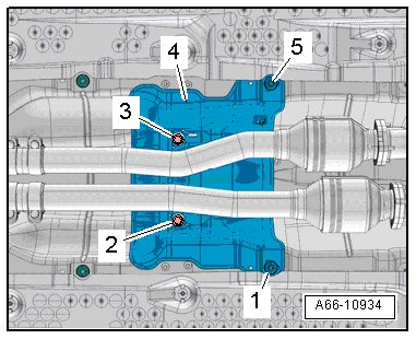 • Tightening specifications, refer to => [ Heat Shields, Crossbraces Overview ] Heat Shields, Crossbraces Overview.