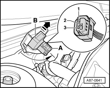 3 Signal line to the Climatronic control module (J255) (the measured value is displayed in the measured value block of the Climatronic control module using Vehicle diagnosis, testing and information system (VAS5051B) in "Guided Fault Finding" function).
