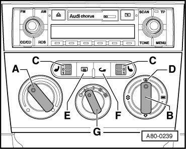 - Bring rotary switch for temperature preselect - A - into position "cold stop" (only on vehicles without A/C system).