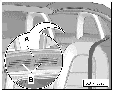 • On the Audi A3 Cabrio, the ventilation openings - B - in the rear lid trim - A - must not be covered by any objects when the rear lid is closed.
