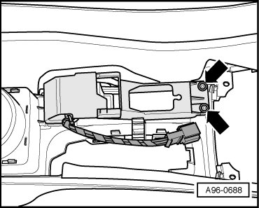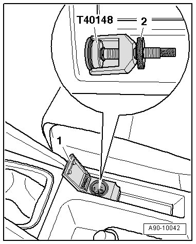 - The release tabs - 2 - on the release tool (T40148) must engage in the openings in the cigarette lighter/ 12V outlet - 3 - - arrow - and the threaded pin - 1 - must slide down as far as the stop.