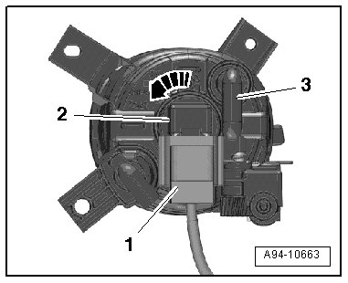 - Rotate the bulb - 2 - counterclockwise - arrow - and remove it from the fog lamp housing.