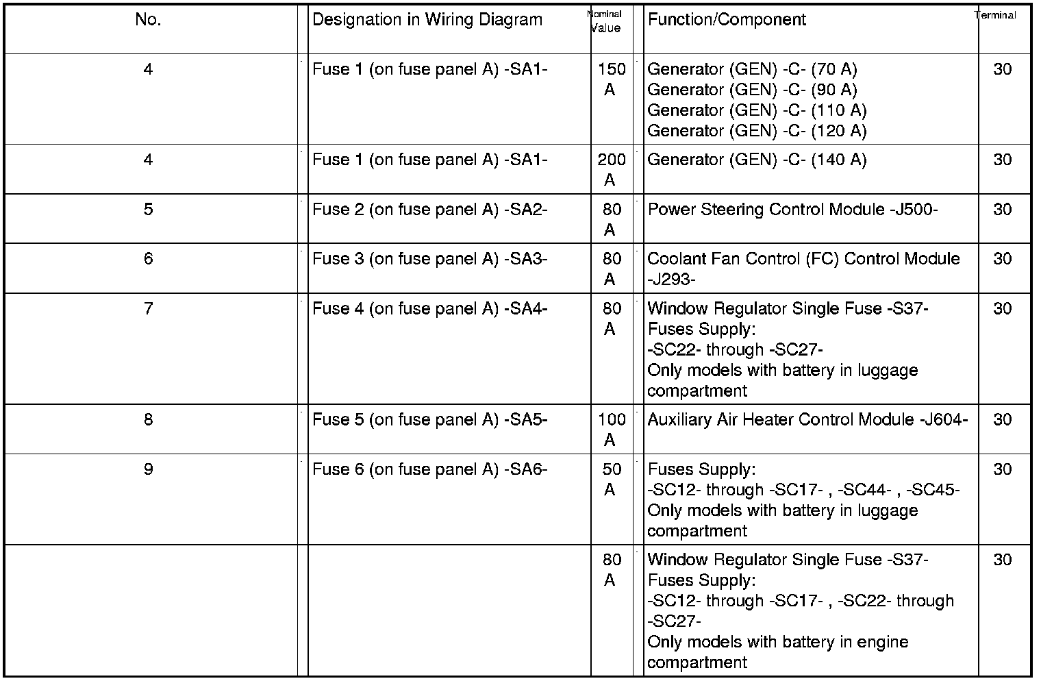 Fuse Arrangements Electronics Box High, from MY 04