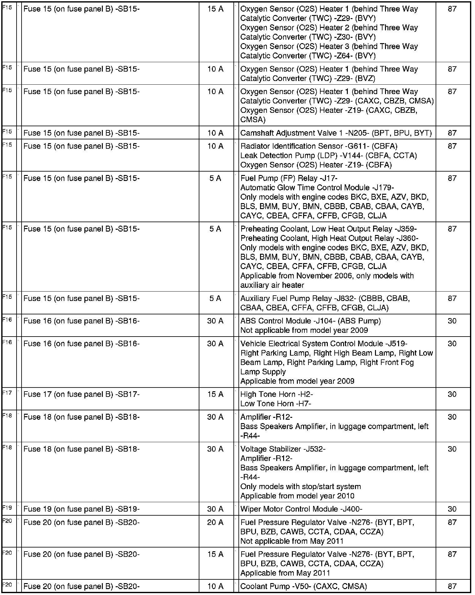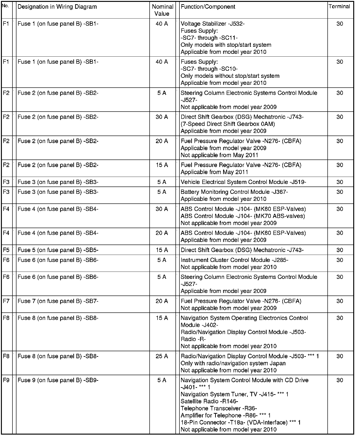 Fuse Arrangements Electronics Box Low, from model year 2007