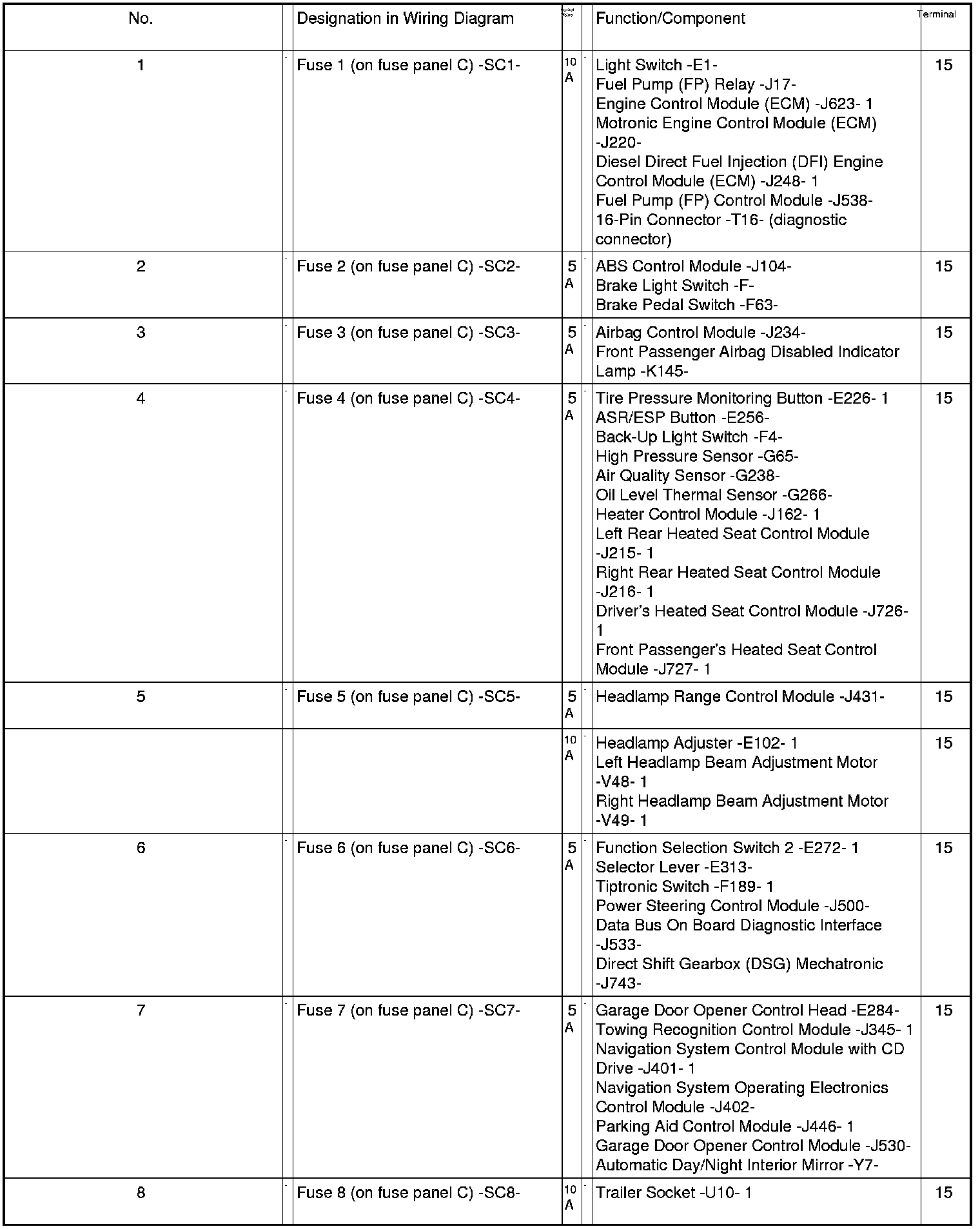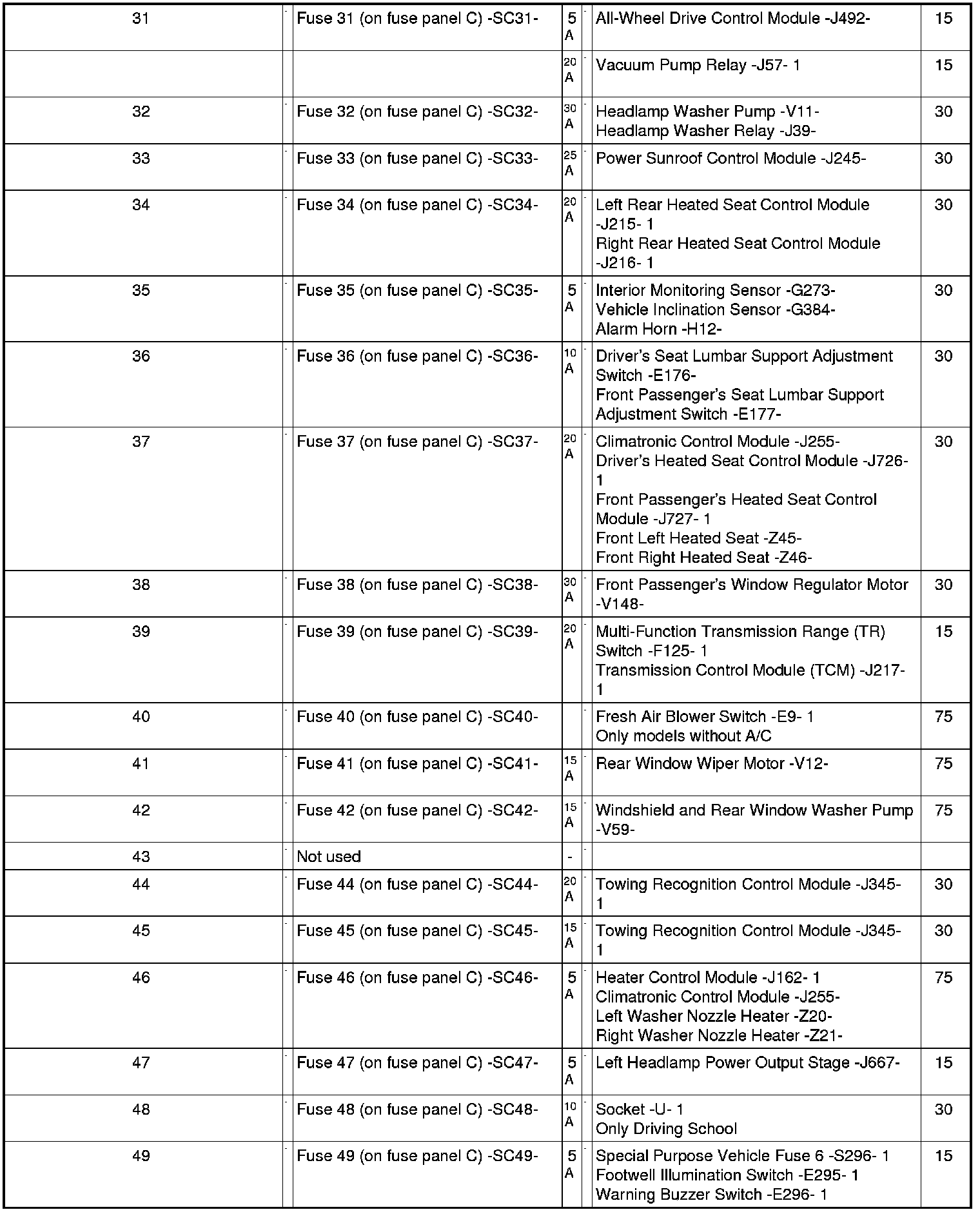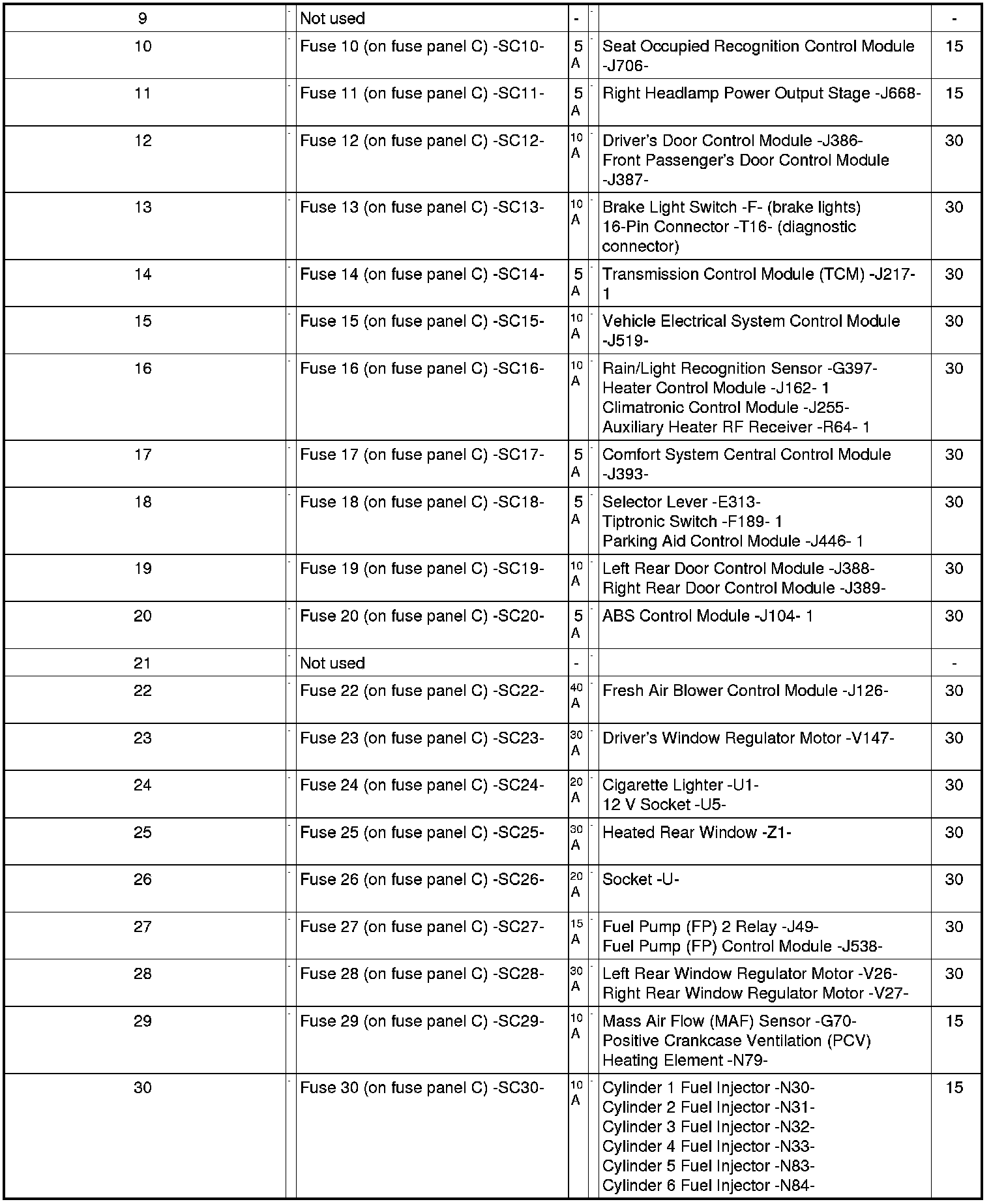Position Of Fuses On Fuse Panel, from MY 06