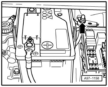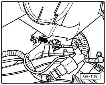 (12) - Ground Connection (in left engine compartment, near battery) -Arrow-