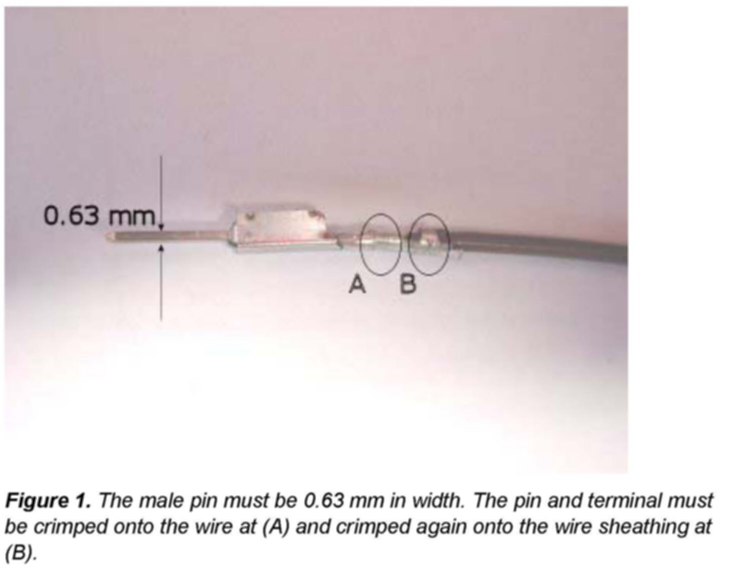 ^ Pin/terminal must be crimped onto the wire sheathing (Figure 1, B).