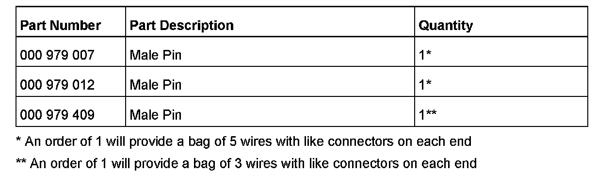 Test the individual terminals by using the standard 0.63 mm male pin (see Figure 1 and Parts Table) to verify proper contact. Make sure that the test pin is not twisted and is inserted correctly into the female terminal. The contact must be tight, but it must still allow the pin to slide into the terminal of the control module connector.