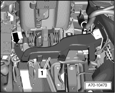 - Remove the screw - arrow - and then remove the air guide - 1 -.