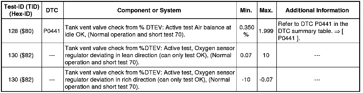 - If any of components or systems fail to meet the specified values. Refer to Diagnostic "Mode 03: Interrogating Fault Memory" to check for stored DTC or the corresponding diagnostic repair procedure = [Diagnostic Mode 03 - Read DTC Memory ] Diagnostic Mode 03 - Read DTC Memory.