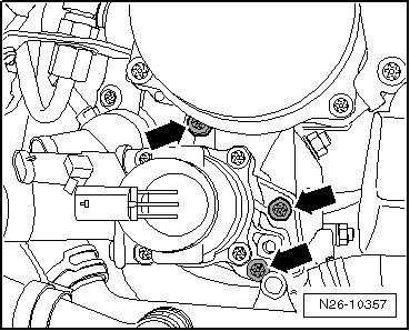 - Loosen the coolant pipe; remove the bolts - arrows -.