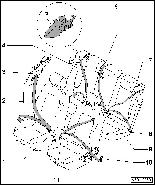 • Removing and Installing, refer to => [ Rear Three-Point Seat Belt ] Rear Three-Point Seat Belt